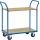Plattform und Schiebebügel verschraubbar, oberer Boden einhängbar. Lieferung zerlegt. Profistahl-/Stahlrohr-Schweißkonstruktion, pulverbeschichtet. Böden Holzwerkstoffplatte, Oberfläche Buchendekor. 2 Lenk-, 2 Bockrollen, Vollgummibereifung, Naben mit Rollenlagerung. Tragkraft oberer Boden max. 80 kg. Etagenhöhe 19 und 72 cm. Ladefläche: 100 x 60 cm.